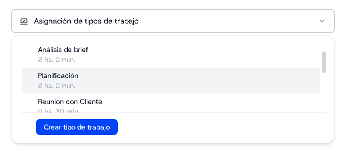 - Al seleccionar el tipo de trabajo, no solo estás clasificando la tarea: también se asignan las horas estimadas que ese tipo de actividad suele requerir.