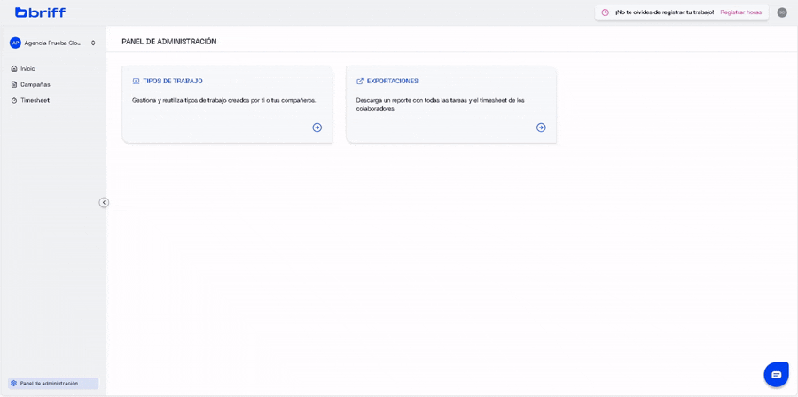Desde la administración permite, editar, archivar o eliminar los tipos de tareas